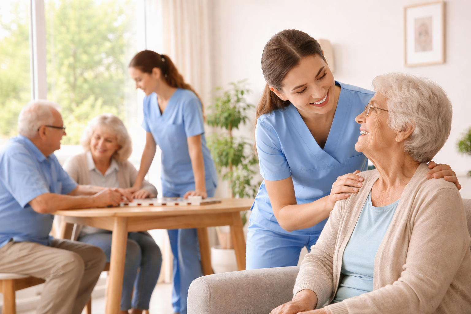 Apoio nas rotinas de higiene e conforto, promovendo o bem-estar e a dignidade da pessoa idosa.